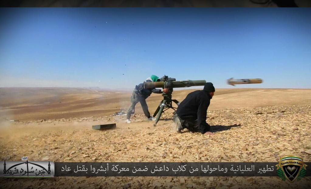 Produced by ISIS media, the Arabic reads “Firing the TOW missile system against the apostates.” The set of photos released together, which can be